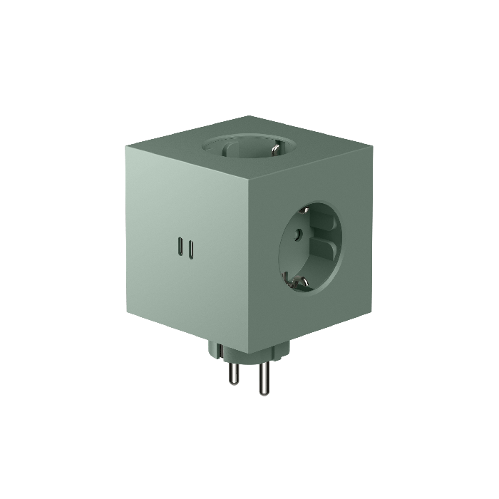 AVOLT Square 2 Socket extender with 30W Dual USBC - Oak Green