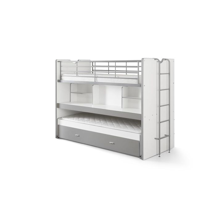 | Specificaties | Material: Combination of particle board and metal Finish: Melamine Colour: GREY Slat base included: Yes Product style: Contemporary Soft close: Not applicable Maximum mattress thickness: 16 Maximum weight in KG: 75 Minimum age: 6 years Certificates: EN747 1&2 FSC Certified: Yes Assembly time in minutes: 120 Length assembled in MM: 2215 Width assembled in MM: 1015 Height assembled in MM: 1610 |