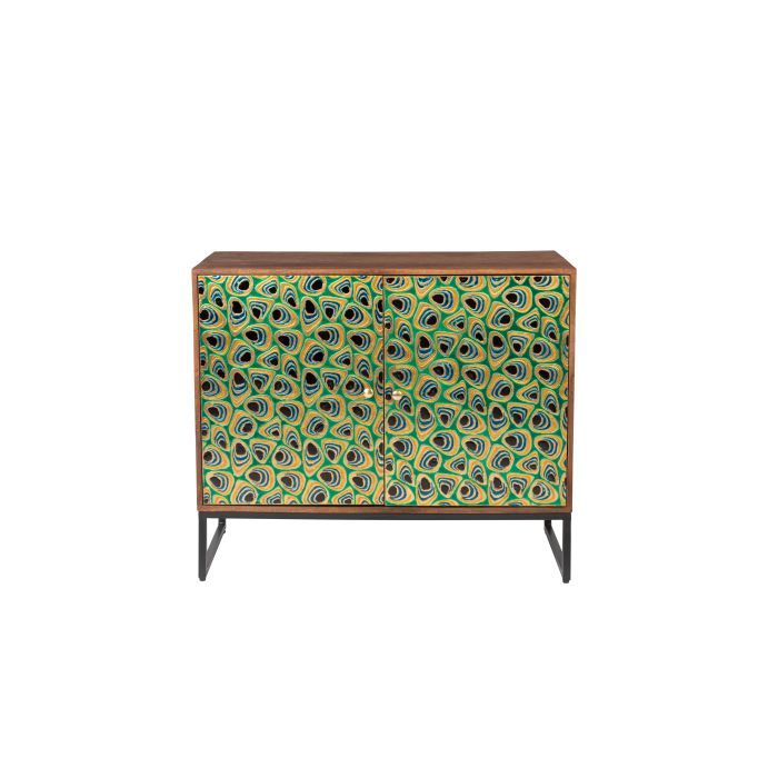 De prachtige meubels van de Dutchbone Meena serie voegen subtiel kleur toe aan iedere ruimte. Deze excentrieke serie is gemaakt van mangohout en versierd met een prachtig patroon van pauwenogen. Eerst wordt een messing folie over het houten patroon gehamerd. De volgende stap is het lakken met de hand, kleur voor kleur, in heldere, metallic kleuren. Dit geeft de spiegel een dreamy look. De spiegel straalt een doorleefde luxe uit, alsof deze al generaties lang in de familie zit. Met deze treasure haal je een stukje pure kwaliteit in huis en creëer je een unieke sfeer, die je interieur naar een hoger niveau tilt.