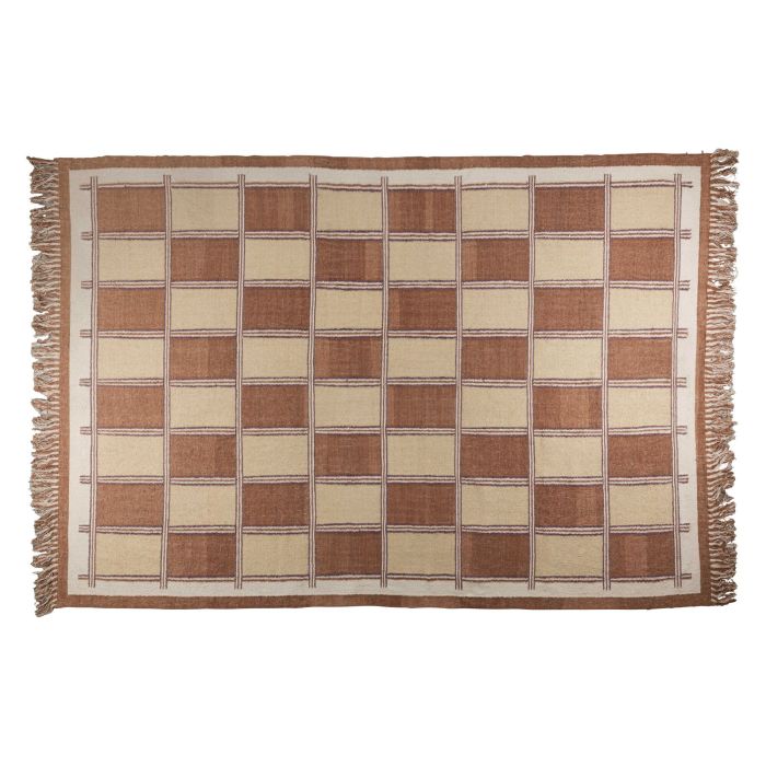 Als je meer karakter en warmte wil toevoegen aan je interieur, zit je goed met de Dutchbone Gambit. Deze vloerkleden en sierkussens vullen de ruimte namelijk direct met een vrolijke en retro sfeer. De accessoires zijn gemaakt van geweven katoen, dat is uitgerust met een opvallend patroon in heldere kleuren. Beige en oranje blokken wisselen elkaar af en doen denken aan een schaakbord. De paarse lijnen tussendoor geven een verrassende twist en zorgen ervoor dat de accessoires helemaal passen in een interieur van nu. Perfect om de slaapkamer, zithoek of een andere ruimte mee om te toveren tot een warme plek – a place to warm your soul.