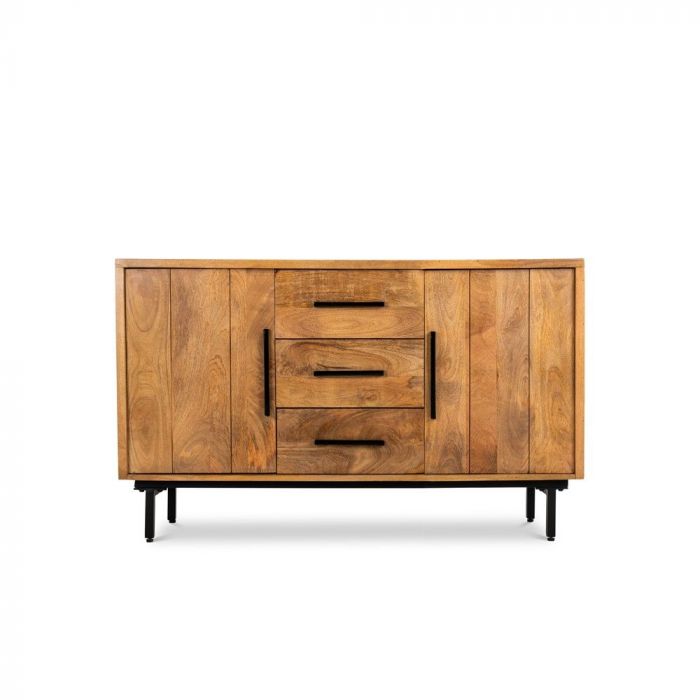 Deze Jayden Sideboard is gemaakt van strak egaal mangohout, anders dan "gewent" gezien mangohout bekent staat om zijn zacht golvende uiterlijk.
