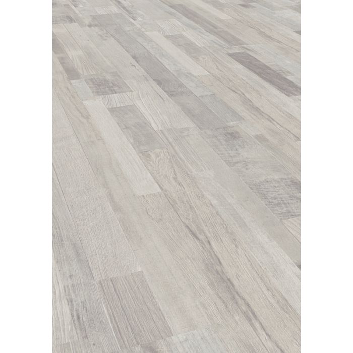 Floer sloophout laminaat, vloeren met een gebruikt en verouderde look! De Drijfhout Wit laminaat vloer heeft een prachtig verouderde houtstructuur. Deze retro structuur vind je nog eens voelbaar terug in de sloophout plank. De planken met een formaat van 128,5 x 19,2 x 0,8 cm zijn afgewerkt met een indrukwekkend driestrooks patroon.