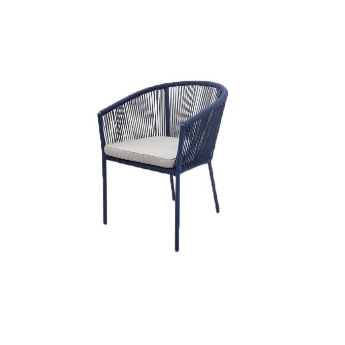Reims stapelbare eetkamerstoel, aluminium in indigo, ronde 4,5 mm touwbespanning indigo, inclusief standaard zitkussen Royal Stone Grey 240