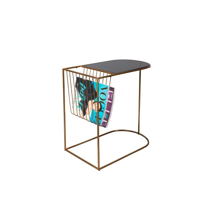 Laat je betoveren door de elegante verschijning van Dutchbone Eileen bijzettafel. Een draadstalen frame in een gouden kleur en een tafelblad van gerookt glas waren nog niet genoeg karakteristieken. Het Dutchbone design team besloot een derde ingrediënt toe te voegen en wel een geïntegreerde tijdschriftenhouder. Het open frame en glazen tafelblad zorgen dat bijzettafel Eileen een heerlijk luchtig karakter behoudt.