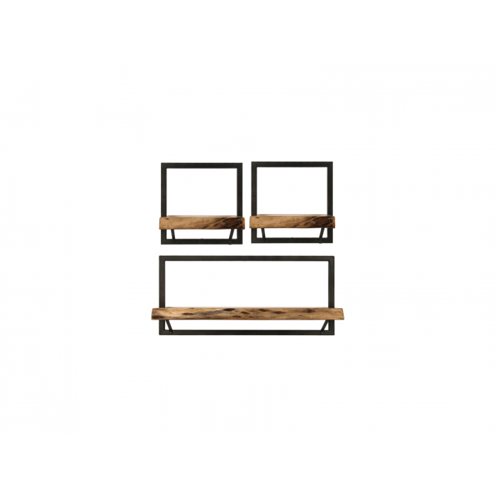 Wandplanken Levels Live Edge - 70x22x70 - Naturel/zwart - Acacia/ijzer